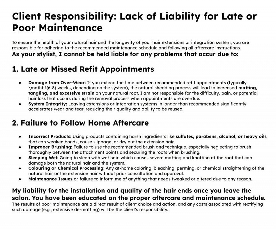 •We do not accept any responsibility for hair fitted, coloured or altered in anyway after it has been returned to you.